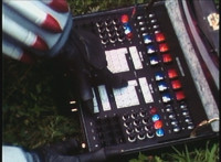 Ballistix opens up a briefcase and presses buttons on a keypad inside. |