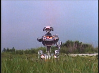 POV of Trooper Terminator being scanned, revealing his circuitry beneath. VR Ryan nod talks in the grass, then picks up a rock, looks at it, charges up his internal circuitry, and energizes the rock with red sparking power. VR Ryan pitches the rock into the air, Trooper Terminator spots it and blasts it out of the sky with his laser. |