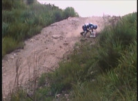 VR Ryan falls and rolls down a hill while protecting the box in his possession, finally stopping and looking upward. |