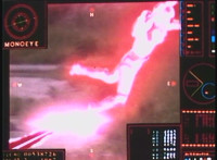 As an explosion erupts in the background, the Battlecruiser spins around and fires. |