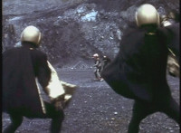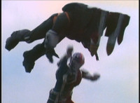 Recycled background. First insert shot is recycled, per source. Second insert cuts before they join other mutants' sides. |