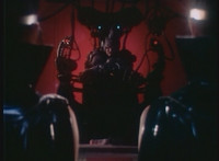 Karl Ziktor morphs into Grimlord and materializes onto his throne. |