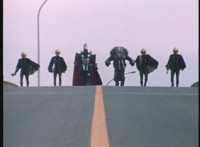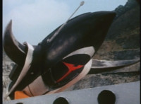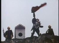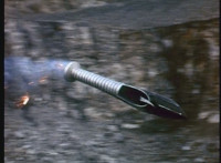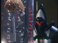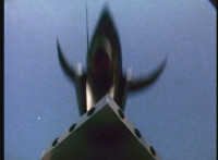 General Ivar gestures, then tosses his cape aside, hops onto a launching pad, gestures, then lies down on it. Skugs rush about, as he morphs into a missile. |
