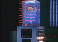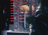 General Ivar talks to the brain in a jar as he approaches it. |