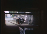 Cuts follow-up shot of their legs walking. |