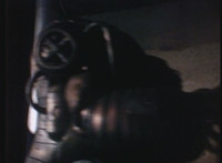 As the Virtual Mutants stand in the dungeon, on the right, Toxoid talks, the lense all smudgy. |