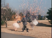 Cuts follow-ups of him hitting VR JB & Kaitlin, then the two Kaitlins regrouping, then the missile heading for them. |