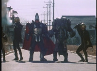 VR JB stands posed as electricity and energy crackles about, teleporting him, the VR Kaitlins (shh!), General Ivar, Frostbot, and Skugs away from the city, and to the virtual world. |