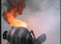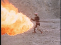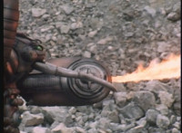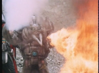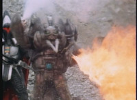 Frostbot motions arms, then aims his left arm forth, firing flames from it. |