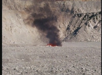 The impact crater continues to smoke and burn. |