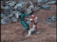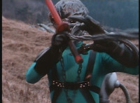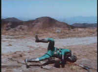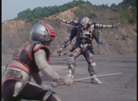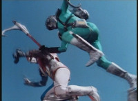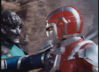 Shot 4 cuts before more writhing occurs; cuts follow-ups of Dreammaster's mask breaking off, revealing a Japanese dude within. |