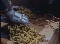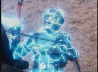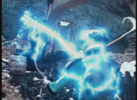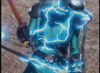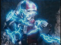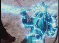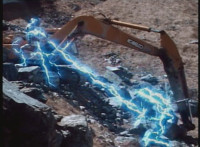 VR Ryan is being fried while standing on an excavator, when he reaches down and picks up a yellow chain. He flings it over and wraps it around Dreammaster's right arm, sending the charge back into him. Both are fried and writhe equally. |