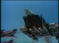Three Air Fighters and Ivar's Ravage Tank in flight mode swoop around and fire pink electricity, bursting the Skybase, as more Air Fighters also fire upon it with same results. |