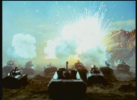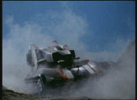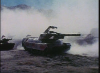 The Ravage Tank rolls off the side of a cliff, General Ivar reacts in the cockpit, as it lands rightside up. |