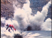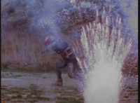 Two unrelated, and recycled, shots overlayed onto each other (the explosion usually follows Air Fighters exploding). |