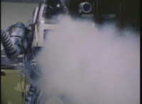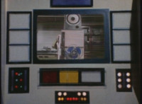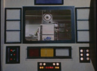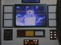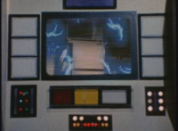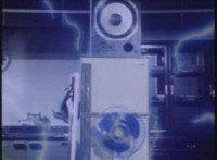 The lab viewscreen shows a refrigerator continuing to move forth on its own. |