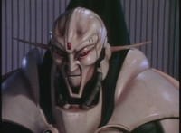 Close side-angle on Grimlord's talking face, Zelton in the background. |