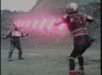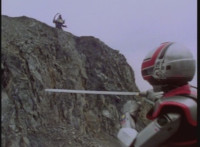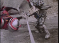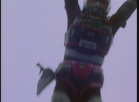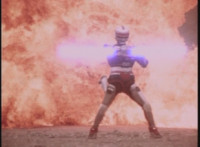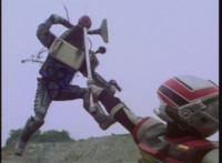 VR JB stabs Vacbot with his Laser Lance, bursting him, then rushing forth and pulling it out of him and twirling it. |