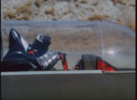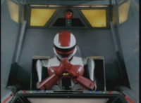 In his cockpit, General Ivar talks and jerks left arm about. |
