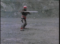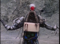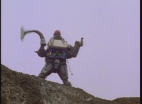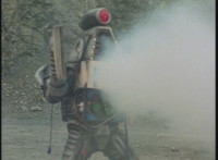 Energy slashed, Vacbot crackles and writhes. VR JB turns around and poses with his Laser Lance, as Vacbot collapses and explodes massively behind him. The destroyed remains of various applicances lie strewn and smoking on the quarry ground. |