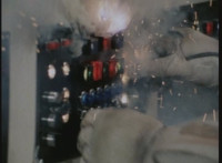 Colonel Icebot is pressing buttons when suddenly the controls begin to spark and explode. |