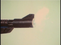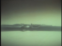 Transitions in; cuts prior downward shot of chamber surfacing. |