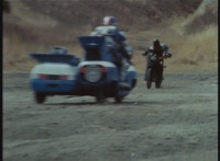 This sequence is pushed up from source position; Cuts follow-ups of Turbo Cycle sitting there then coming to life and driving at Dark Heart. |