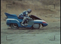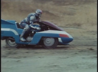 "Metalder" blurred out of shot 2; Cuts follow-up shot of Turbo Cycle turning. |