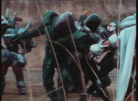 Track along beside Zelton & Blue Boar standing with their armies in rows. |