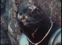 Slow zoom out from an extreme close-up of Grimlord's ugly mug, as he talks. |
