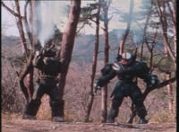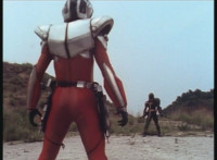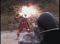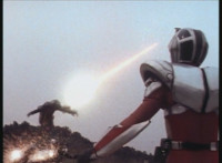 Renegade stands with his hand ready near his holster. Dark Heart stands with his rifle held upward. Renegade suddenly pulls his twin pistols, Dark Heart dives out of the way of the laserfire, rolls on the ground and fires back, bursting Renegade until both his pistols go flying. Dark Heart slowly stands back up, keeping his rifle aimed forth. Hornbot & Chromedome race away from the downed Renegade, joining Dark Heart's side, talking to him. Renegade reacts, Hornbot speaks, then both he and Chromedome try to grab Dark Heart's rifle, holding it down, as Renegade opens his forehead cannon. Dark Heart spots this, pushes the two mutants in front of him, then leaps up and flips over them as they're blasted by Renegade, Dark Heart taking only minimum damage. He rolls, grabs one of Renegade's pistols, and fires on him, bursting his forehead cannon. Dark Heart rises up, tosses the pistol, then rushes over and punches Renegade, then while he's dazed, charges up his cyborg arm, grips the back of Renegade's neck, lifts him off his feet, and flings him into the air, sending him rolling down a hill. Dark Heart approaches slowly. |