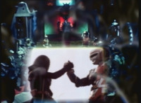 Grimlord's energy summons an energy screen above the mutants in the Dungeon, forming an image of Dark Heart & VR Ryan gripping hands. |