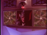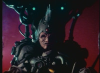 Zoom out as Grimlord keeps his arm stretched out toward the console, then lowers it and looks forth. |