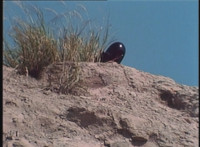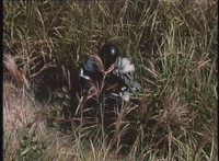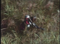 Dark Heart nod-talks, then rushes off through the grass, stopping and looking up suddenly. |