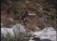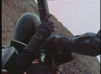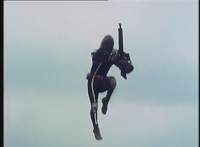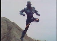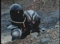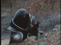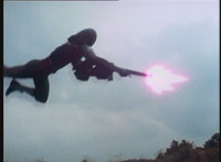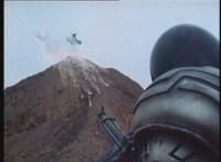 Close-up of Air Striker reacting downward. The mutants in the quarry all stop and look upward. |
