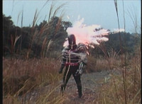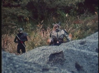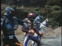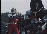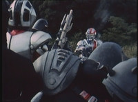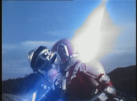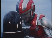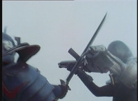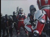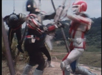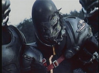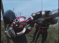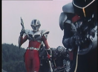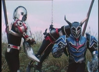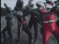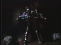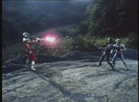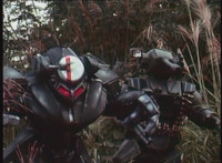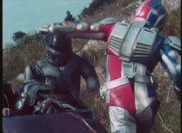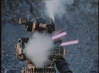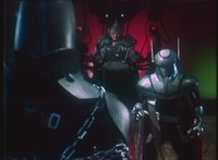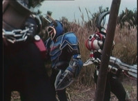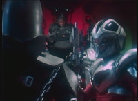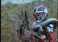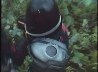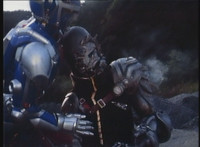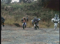 VR Ryan leaps in and fights Chromedome & Hornbot until they're out of the frame, he then turns and hops up and chops the chain suspending Dark Heart in the air. He falls to the ground, VR Ryan rids him of the chains and sits him up, talking to him. Dark Heart slowly reaches into the bushes, then suddenly whips out his rifle, aims it forth, and fires upon VR Ryan, bursting him. He rushes over and points the rifle at him point blank, VR Ryan talks, then spots Renegade entering the scene, with a pair of Mutant Drones hauling in the real Dark Heart between them. VR Ryan reacts, Renegade talks, VR Ryan responds, Renegade speaks a bit, VR Ryan replies, Renegade speaks again then aims his pistol forth, VR Ryan reacting, as does the real Dark Heart. |