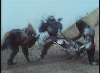 Track along beside Zelton & Blue Boar standing with their armies in rows. |