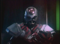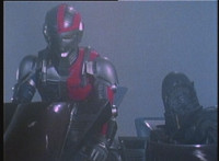 Decimator turns around and faces front, Renegade also turning around behind him. |