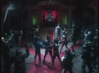 The virtual mutants all stand before Grimlord, not a single arm raised. |