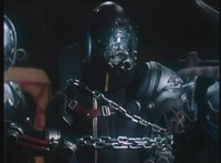 Zoom in on Decimator stepping forth in the dungeon (as Air Striker is being led away in the background). |