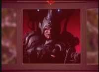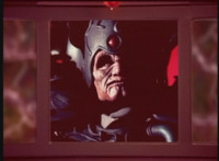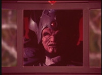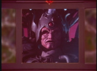 Grimlord's energy summons an energy screen above the mutants in the Dungeon, forming an image of General Ivar, motioning his right hand as he talks close. |