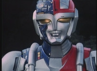 Sharp zoom in on Chromedome beating Dark Heart with his rifle butt as Hornbot watches. |