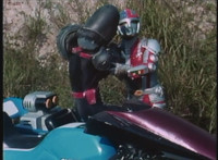 Renegade holds his pistol forth and prepares to squeeze the trigger, VR Ryan stands there, real Dark Heart breaks out of the Drones' hold, then kicks Renegade in the calf, knocking him down. VR Ryan kicks the fake Dark Heart, knocking him down. Real Dark Heart swipes Renegade's pistol before kicking him away, then dives, fires, and bursts fake Dark Heart. Renegade pulls out his second pistol and goes to fire on VR Ryan, when Dark Heart rushes in and takes the blast for him, bursting but firing back and missing as Renegade dives out of the way. |