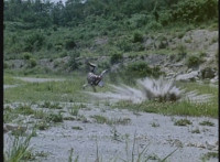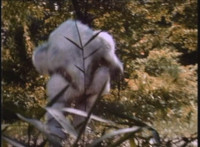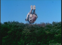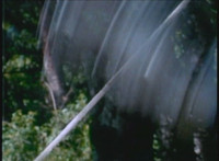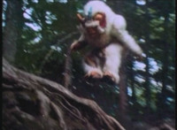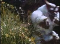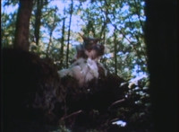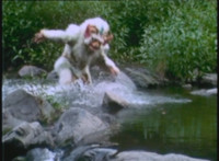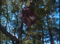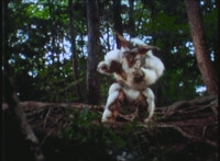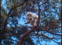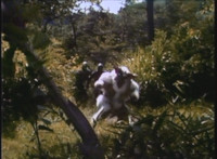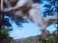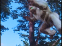 Cuts prior shot of it leaping out of tree; cuts before it stops against a rock for a moment. |