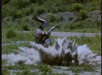 VR JB flips over as a dirt burst erupts next to him, engulfing him. |