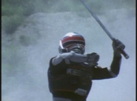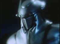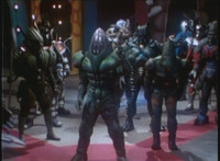 Decimator bows then crosses arm over chest, in the dungeon (as Air Striker is being led away in the background). |