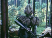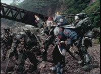 Distant shot of Horrorbot and his Mutant Drones in the woods. |