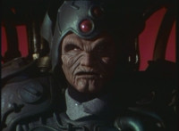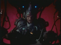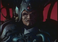 Grimlord's energy screen above the mutants in the Dungeon shows an image of General Ivar, motioning his right hand as he talks close. |