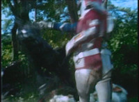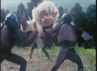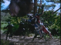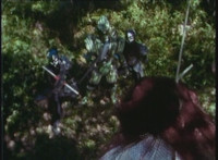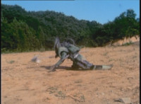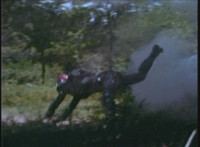 Horrorbot rushes off into the woods with his Mutant Drones, with one pointing out another Furry Wombat in the trees above, which leaps out of the treetops, falling into the bushes, then getting up, staggering, and collapsing. |