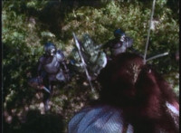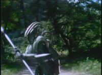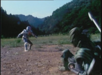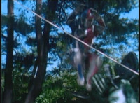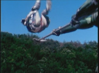 Shot 1 is split from two shots ago; cuts follow-ups of the FW landing in another tree, then Horrorbot shooting it down with a dart. |